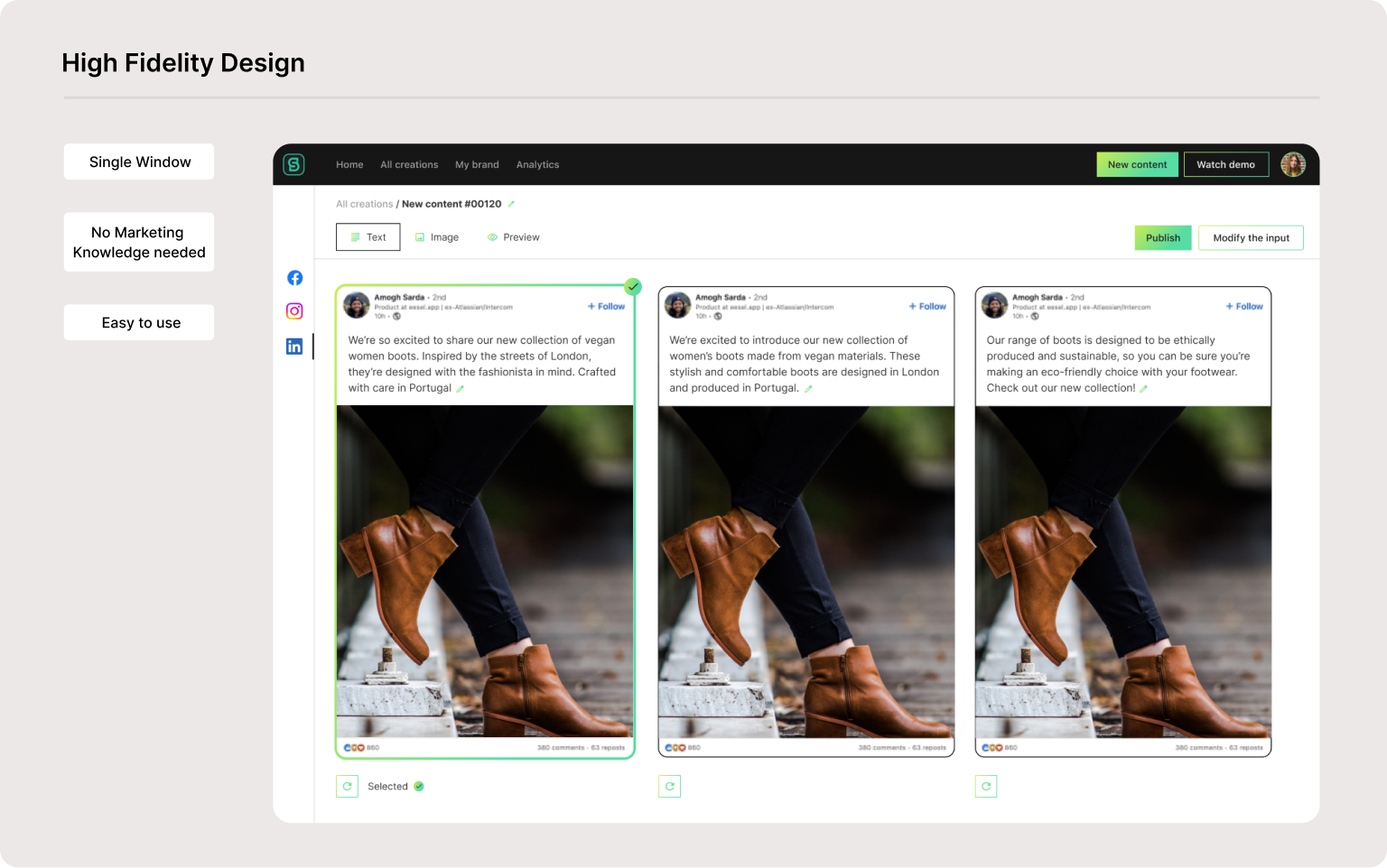 To ensure efficient multi-platform content creation, the platform should allow users to adapt their posts for specific channels without the need for separate content creation. The AI-driven solution should seamlessly generate content for various platforms in the background, providing users with the ability to preview and customize the content before sharing.